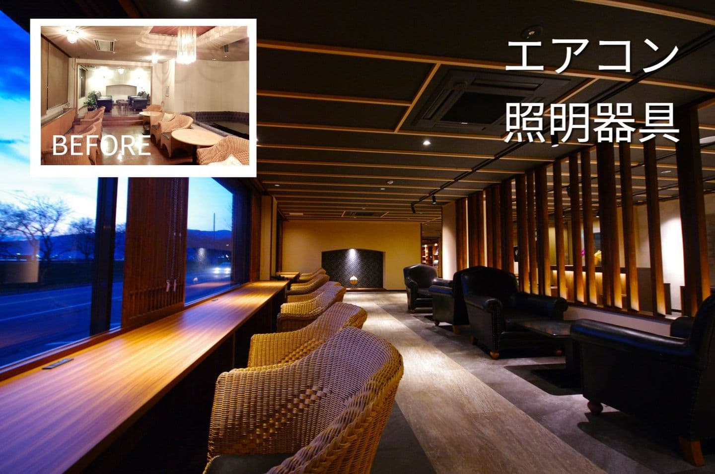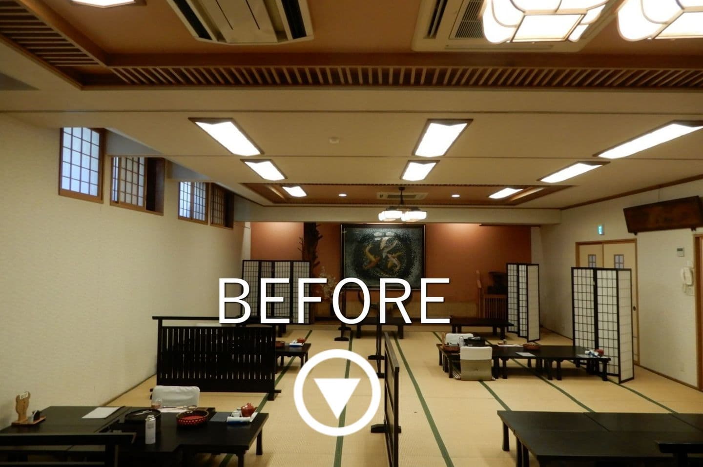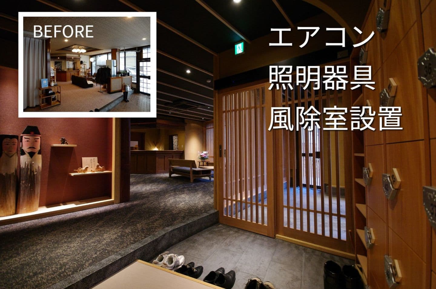 既存建物全体をリノベーション。既存大広間の一部を大浴場にリノベーション。