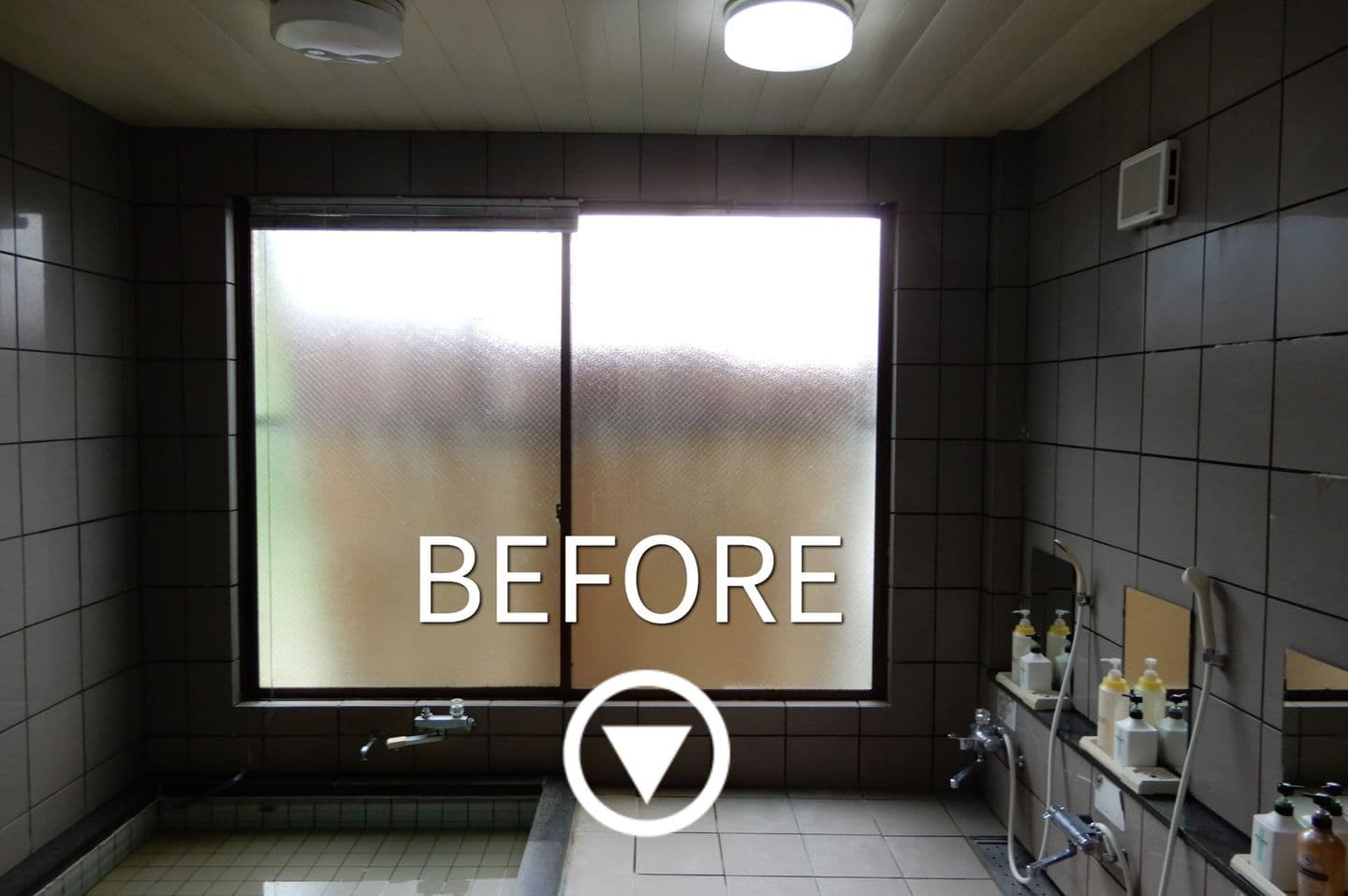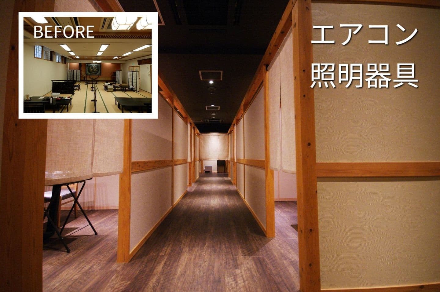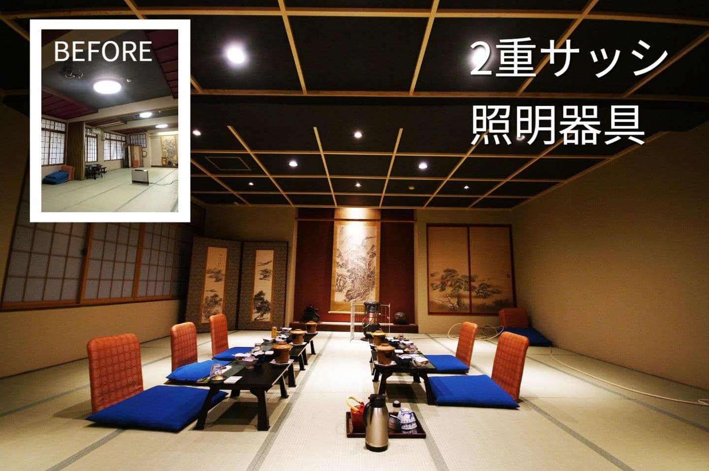 既存建物全体をリノベーション。既存大広間の一部を大浴場にリノベーション。